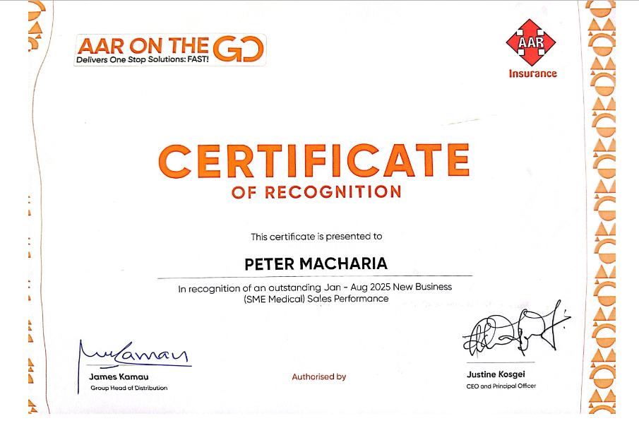 In Recognition of an Outstanding Jan - Aug 2025 New Business (SME Medical ) Sales Perfomance